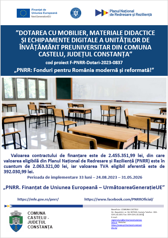 „PNRR. Finanțat de Uniunea Europeană – UrmătoareaGenerațieUE”.